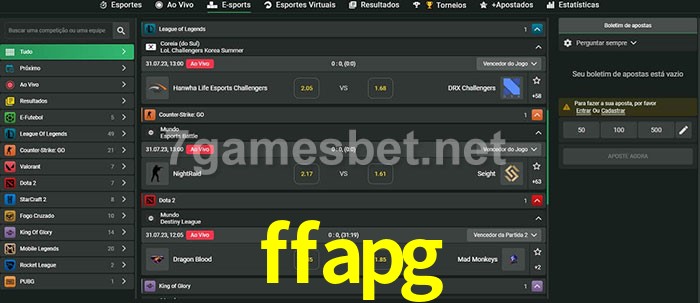 O ffapg oferece uma grande seleção de opções de apostas em e-sports com probabilidades competitivas